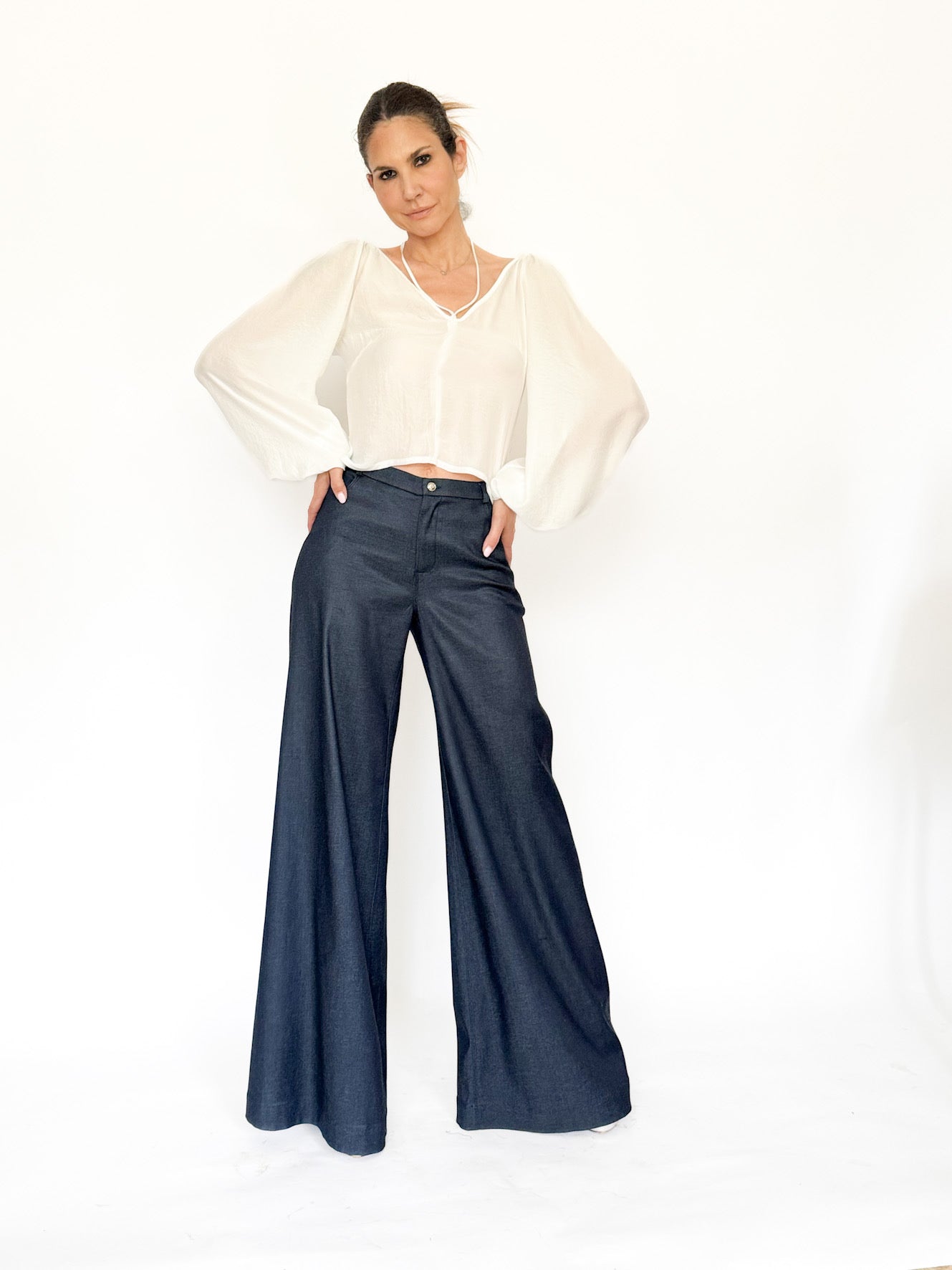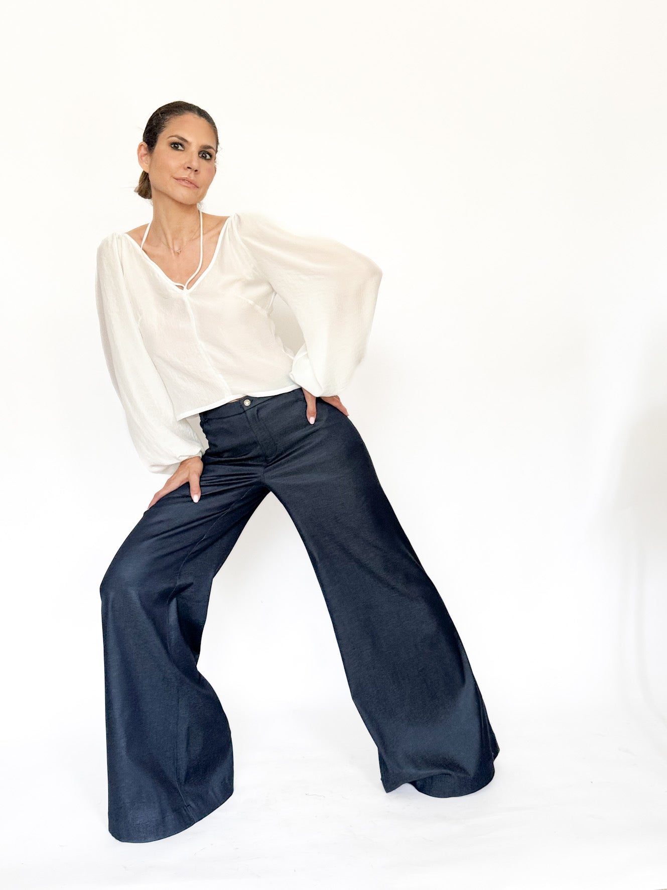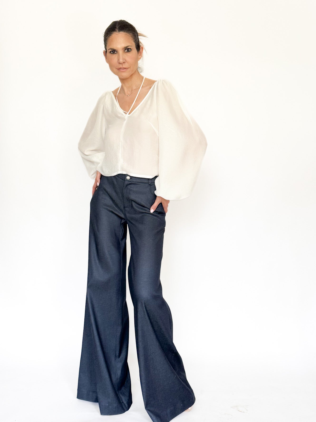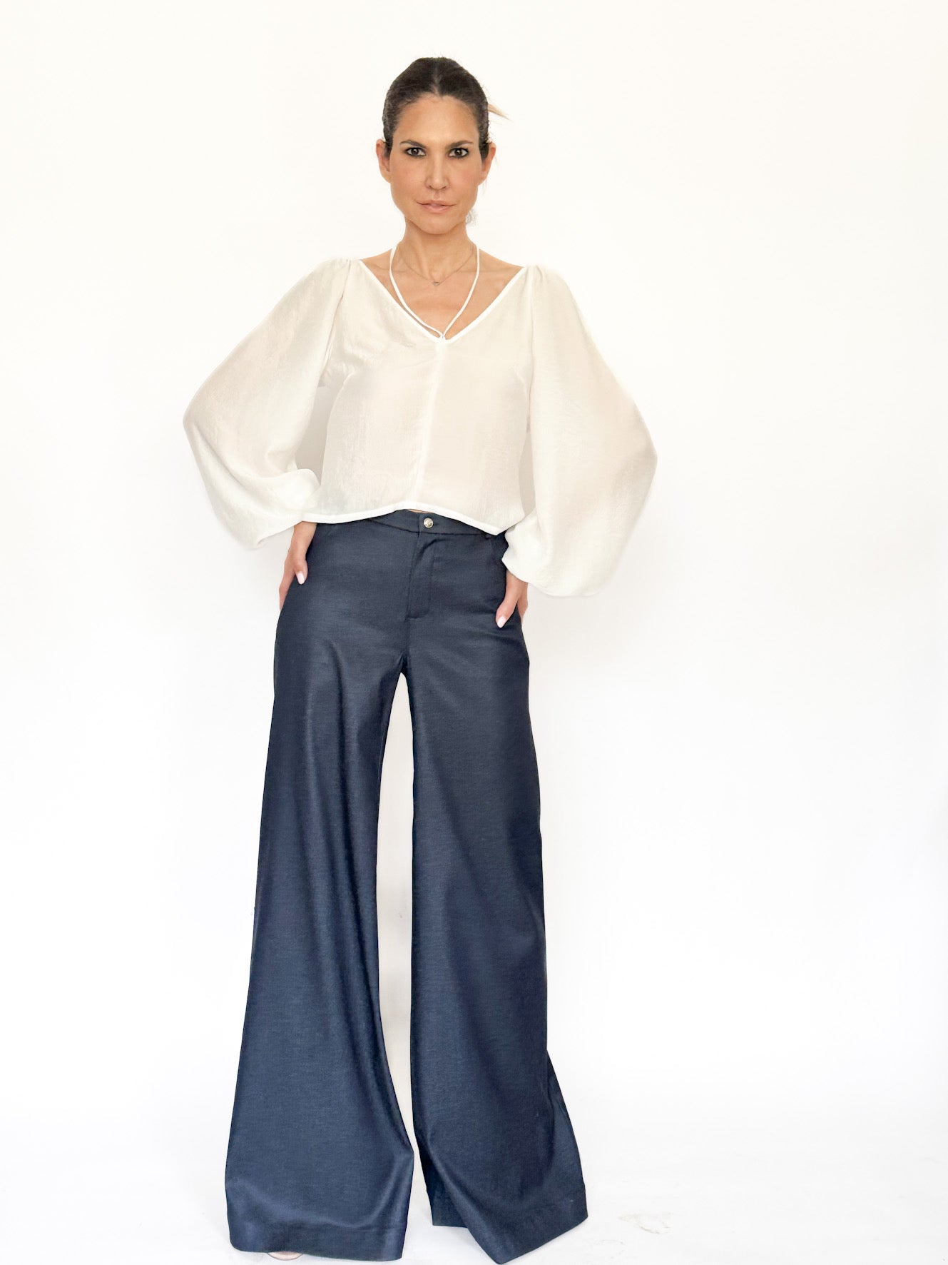 Adaugă acești pantaloni evazați în garderoba ta pentru un look sofisticat și versatil, potrivit pentru orice eveniment! Contactează-ne pentru întrebări, personalizări sau pentru a alege lungimea perfectă pentru tine!